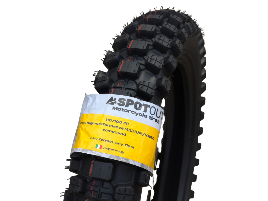 El neumático 110/90-18, diseñado en Italia por especialistas en enduro, ofrece un desempeño de alto nivel en una amplia variedad de superficies. Su construcción utiliza un compuesto medio/hard desarrollado para maximizar el contacto con el terreno, garantizando tracción precisa, especialmente en curvas y zonas de apoyo lateral.